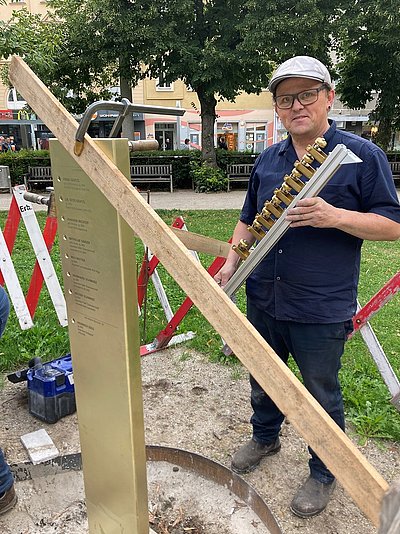 Im Mai 2022 wurde die erste Stele am Bernaschekplatz errichtet, über den Sommer wurden weitere Erinnerungszeichen in der Innenstadt aufgestellt.