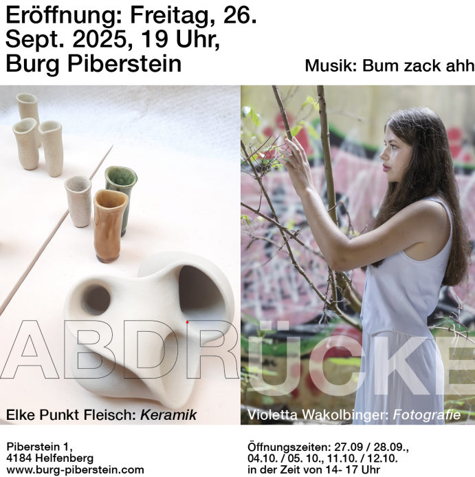 Eröffnung: 26. Sept. 2025, 19.00 Uhr; Ausstellung bis 12. Okt. 2025 Burg Piberstein Piberstein 1, 4184 Helfenberg