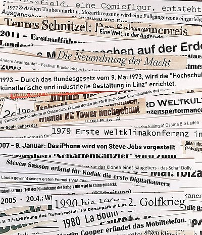 Prägende Ereignisse der letzten 50 Jahre aus Kultur, Politik, Wirtschaft und Gesellschaft werden von Absolvent*innen der Kunstuniversität Linz in den Fokus genommen. Der Ausschreibung sind über 80 Künstler*innen gefolgt. Diese Sammlung von künstlerischen Beiträgen lädt die Besucher*innen ein, in eine Rückschau der letzten fünfzig Jahre einzutauchen. Die Ausstellung vermittelt, wie unterschiedlich und vielseitig die Absolvent*innen Geschichte interpretieren und bettet somit die Kunstuniversität Linz in ein größeres Bild des Geschehens ein.