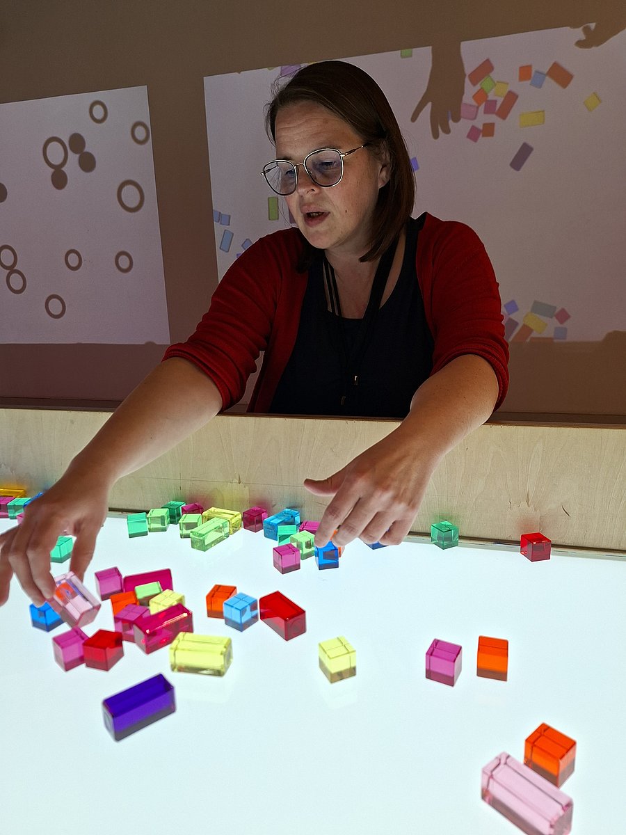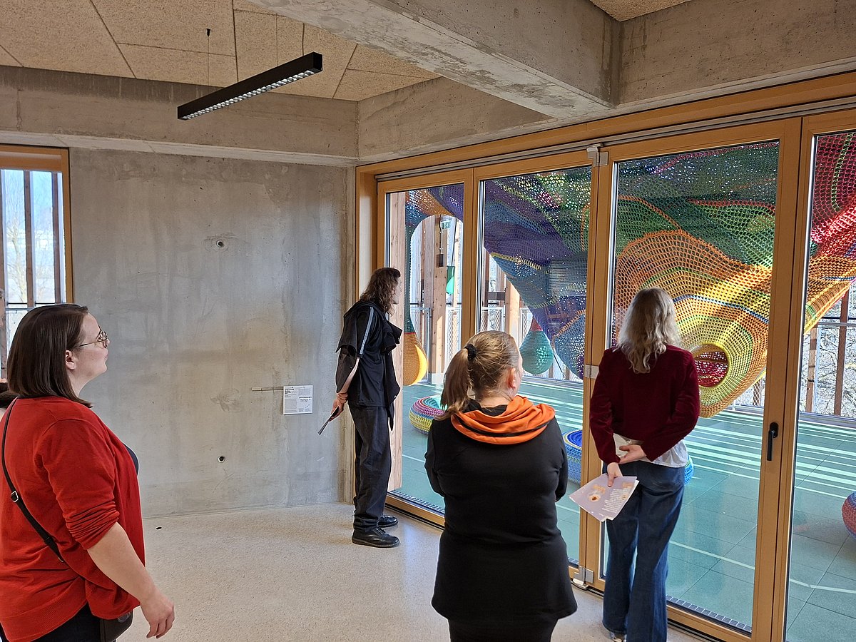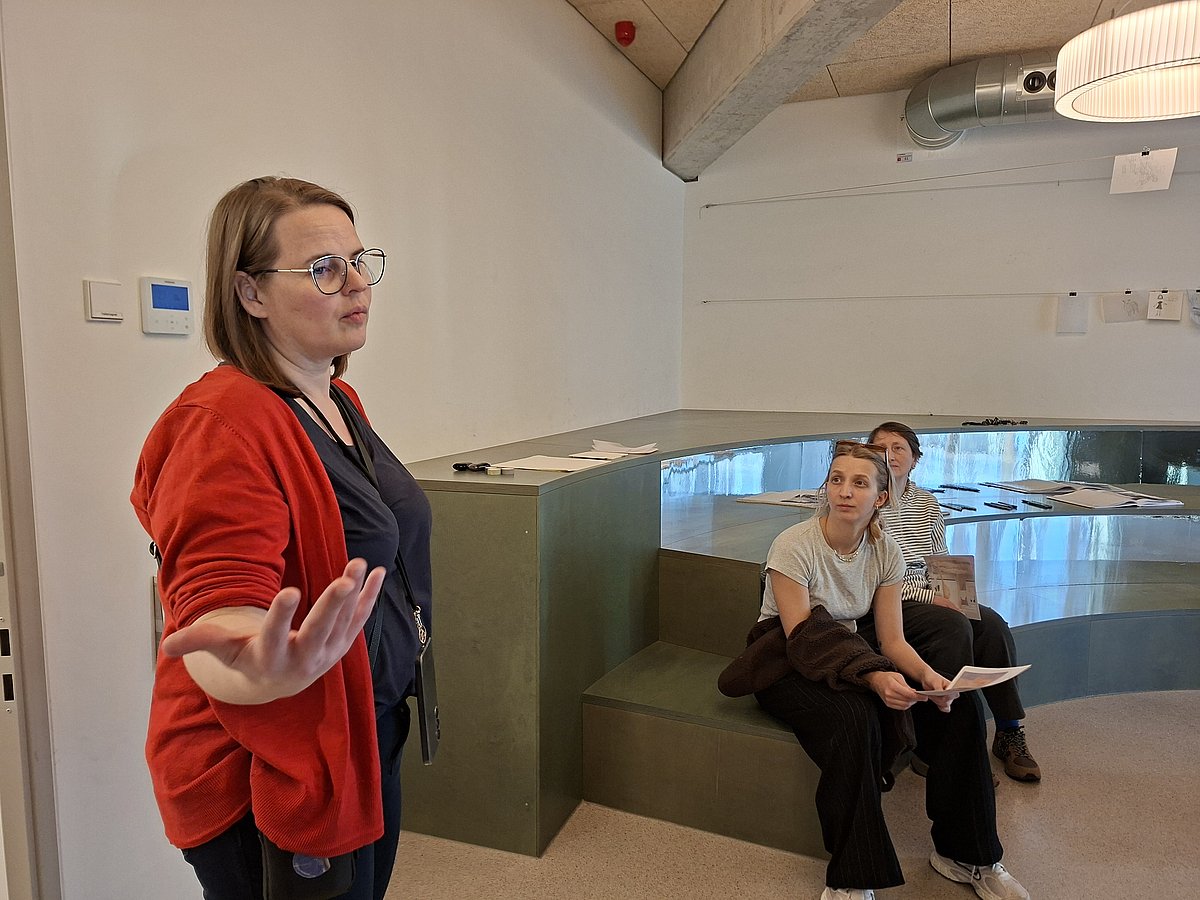 Wir zeigen pro Jahr 2 Ausstellungen. Sie werden von der künstlerischen Leiterin mit Künstler:innen und gemeinsam mit Kindern in Beiratsgruppen vorbereitet. Das ist ein partizipativer Prozess von der Idee bis zur Präsentation. Dazu gehören Einarbeitungen und Qualitätsentwicklung im Team – wir definieren, wie Vermittlung im Haus verstanden und umgesetzt wird, und sichern Standards in der Arbeit mit Gruppen.