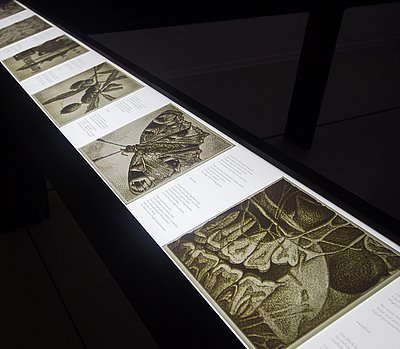 Traditionelle und moderne Methoden wurden kombiniert, um die Idee der Hybridisierung zu reflektieren. Ich verwendete Zeichnungen und handschriftliche Notizen als traditionelle Methoden. Als moderne Methoden transformierte ich die 36 Zeichnungen in 3D-gedruckte Lithophanien aus Kunststoff und laserdruckte die Gedichte auf transparente Plastikfolien. Die Lithophanien und Gedichte sind nebeneinander auf sechs im Museums-Stil gehaltenen Leuchttischen positioniert, um die Stücke zu beleuchten und die Anziehungskraft von Licht und Erzählkunst zu nutzen. Dieses Projekt handelt von der Entdeckung von Zeit und Raum in einer sich verändernden Umgebung und davon, Wege zu finden diese Erkenntnisse darzustellen und ihnen ein Denkmal zu setzen.