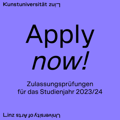 Sie können sich jetzt an der Kunstuniversität Linz für das Masterstudium Medienkultur- und Kunsttheorien im Sommersemester 2023 bewerben.