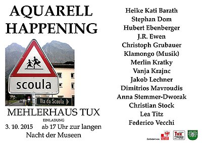 Ausstellungsbeteiligung am "Aquarellhappening Tux 2015" im Rahmen der langen Nacht der Museen von Studierenden und AbsolventInnen der Bildenden Kunst / Malerei und Grafik.
