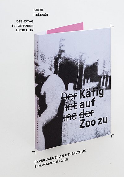 Das Buch Der Käfig ist auf, und der Zoo zu verbindet künstlerische Arbeiten von 33 Studierenden und AbsolventInnen der Experimentellen Gestaltung an der Kunstuniversität Linz mit Texten internationaler TheoretikerInnen.