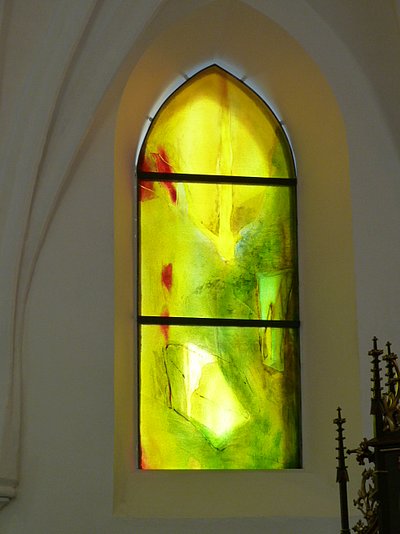 Ewald Walser, Lehrender bei textil·kunst·design, gestaltete die Farbglasfenstern im Altarraum.