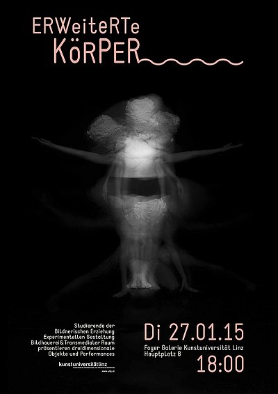 Perfomances im Rahmen der Eröffnung am 27. Jänner 2015, die dreidimensionalen Objekte zum Thema  „Erweiterte Körper“ sind bis 30. Jänner ausgestellt.