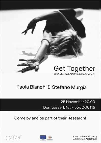 Gemeinsam begrüßen wir Choreografin Paola Bianchi und Musiker Stefano Murgia, die bis 12. Dezember 2025 als Artists in Residence im ERC-Projekt OLFAC zu Gast sind. Ihre Residenz widmet sich der Beziehung zwischen Gerüchen, Affekten und Körperbewegungen. Anknüpfend an ihr langfristiges choreografisches Forschungsprojekt ELP, erweitern Paola und Stefano ihre bestehenden Methoden um die Arbeit mit dem Olfaktorischen.