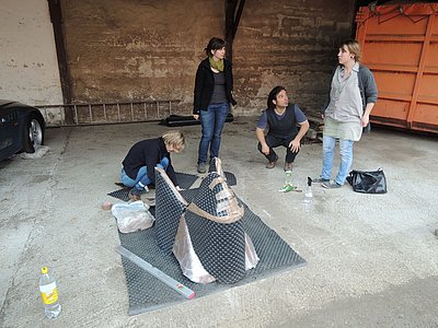 Das Projektgelände, das der Abteilung im Sommersemester 2013 zur Verfügung steht, bietet den Studierenden vielfältige Möglichkeiten mit ihren Projekten und Arbeiten auf die Gegebenheiten des Ortes zu reagieren.