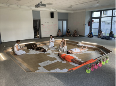 Kunstperformance der jungen Künstlerin Theresia Pürmayr im Zuge der Reihe "Kunst im Bad". Die Thematik Nähe und Distanz wurden von ihr und ihren KollegInnen eindrucksvoll und kreativ dargestellt.