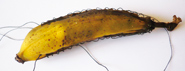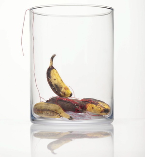 Eva Daxl: "Metamorphose bedeutet Veränderung und Umwandlung. Auch bei meinen Bananen passiert diese Metamorphose in zweierlei Hinsicht. Zum einen wurden sie leergegessen und wieder zugenäht, also nur scheinbar wieder in ihren Urzustand zurückversetzt, zum anderen verändern sich die Bananen nach ihrem Auffüllen auch selbst, sie trocknen aus, werden brüchig, mumifizieren gleichsam und werden schwarz. Auch die Transformation von einem dreidimensionalen Objekt, einer Installation, zu einer zweidimensionalen, sterilen und reinen Fotografie, kann man als Metamorphose sehen. Gerade in der heutigen Zeit ist der Inhalt oft anders als die Verpackung auf den ersten Blick verspricht und kann irreführend und enttäuschend sein. Viele Produkte werden mit Rohstoffen aus der Natur hergestellt, bei vielen von ihnen erkennt man durch die lange Verarbeitung die verwendeten Grundmaterialien nicht mehr. Ich wollte eine „natürliche Mogelpackung“ erstellen, etwas Volles gegen etwas „Leeres“ tauschen bzw. ein mit ungenießbaren Dingen gefülltes Kunstprodukt, dem man die Nähe zur Natur aber noch ansieht, schaffen."