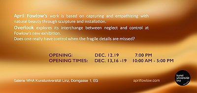 Eröffnung: 12. Dezember 2019, 19.00 Uhr; Ausstellung bis 19. Dez. 2019 Galerie WHA, Kunstuniversität Linz, Domgasse 1, EG