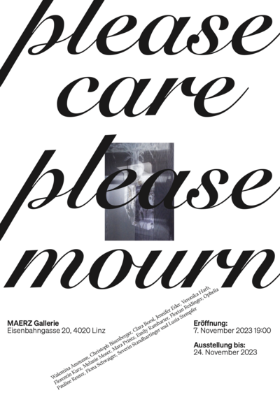 Das Ausstellungsprojekt »Please Care - Please Mourn « führt die beiden Lehrveranstaltungen »Einführung in die künstlerische fotografische Praxis« von Martin Bilinovac und »Labor Fotografie« von Maximilian Anelli-Monti am Institut für bildende Kunst und Kulturwissenschaften zusammen.