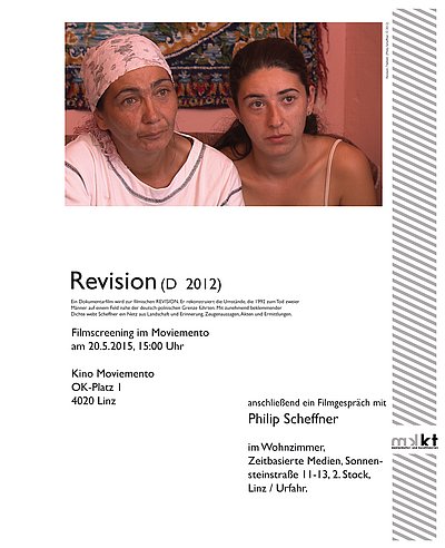 Anschließend ein Filmgespräch mit Philip Scheffner im Wohnzimmer, Zeitbasierte Medien, Sonnensteinstraße 11-13, 2.Stock, 4040 Linz.