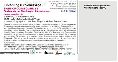 Eröffnung: 27.11.2013 19.00 Uhr; Ausstellung bis 12.01.2014 Galerie der Stadt Traun, Hauptplatz 1, 4050 Traun