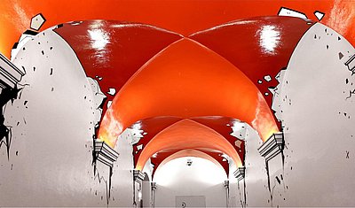 Der spanische Künstler Juan Lopez führt mit großflächigen Wandarbeiten aus Klebefolien sowie mit Videos gestalterisch aber auch inhaltlich unter dem Titel „The Space invades“ die Übergänge und Verbindungen im neu fusionierten OÖ Kulturquartier zusammen. Es geht um die Visualisierung und Öffnung des Areals für das Publikum und gleichzeitig darum in einer anarchischen Geste an den traditionellen Gebäuden zu kratzen und den dahinter liegende neuen Geist freizulegen.