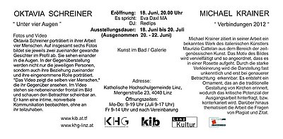 Eröffnung: 18. Juni 2012, 20.00 Uhr; Ausstellung bis 20. Juli 2012 KHG Linz, Galerie an der Universität Mengerstraße 23