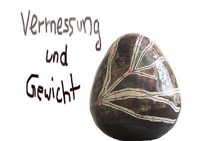 "Die neuen Arbeiten, die ich in der Ausstellung „Vermessung und Gewicht“ zeige, sind angeregt durch das Buch „Geographies of Dis-Orientation“ von Marcella Schmidt di Friedberg entstanden. Auf ovale Tonobjekte habe ich mit Engobe und Glasur Bilder gemalt: Räume, Architekturen, Landschaften und Zeichen. Durch die gekrümmte Oberfläche verschieben sich die Perspektiven mit der Bewegung des Betrachters um die Keramik herum, und die Geschichte der Des-Orientierung schließt sich in der runden Form und läuft fort. In den Titeln der Arbeiten beschreibe ich das Verloren-Gehen als eine "Wohltuende Erfahrung", betone das Fehlende und Lose oder nenne jenen zweiten Ort, der aus jeder Perspektive zugleich sichtbar ist und alles zeigt." (Oktavia Schreiner)