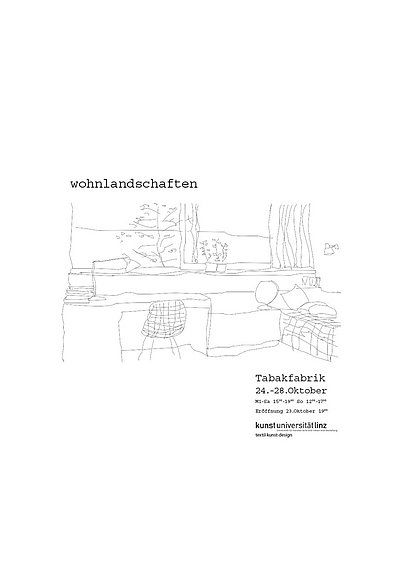 Auf den Spuren visueller Phänomene im Innenraum wird in der Ausstellung „Wohnlandschaften” der Fotografie in ihrer Funktion als ordnungsstiftendes Prinzip kultureller Elemente im Wohnraum nachgegangen. Dies veräußert sich insbesondere in “virtuellen Landschaften”, in Form von Perspektiven und Öffnungen (Bildern, Fenstern) zum Außenraum, und nicht zuletzt in “Wohnlandschaften”, im Arrangement der Objekte, Pflanzen und Möbel im Wohnraum. Ihre Wechselwirkungen im Wohnraum, sowie ihre medialen Übertragungsformen, werden von den beteiligten Künstlerinnen in Installationen, anhand der Bearbeitung von textilen Oberflächen, sowie konzeptionellen Arbeiten in der Tabakfabrik Linz zum Thema gemacht.