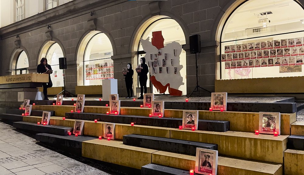 Mit dieser Performance wollen die Künsterinnen einen Einblick in das geben, was im Januar 2026 im Iran geschehen ist.