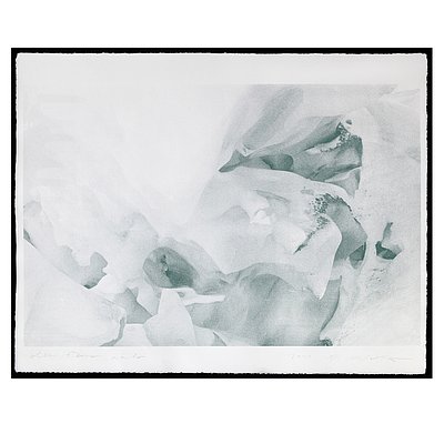 Portraits of a glacier ice cave that has now already been melted. Consciously chosen Representation by screen printing, a lot of information from the analogue original photo is lost through the rasterization.