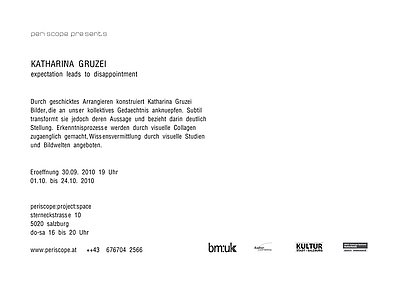 Eröffnung: 30. 09. 2010, 19.00 Uhr periscope:project:space, Sterneckstrasse 10, Salzburg