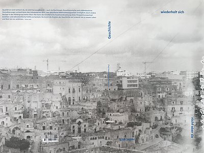 2016 richtete eine Gruppe von Kunstschaffenden und Lehrenden der Kunstuniversität Linz ein temporäres experimentelles Labor in Matera ein, um den Blick auf die Gleichzeitigkeit des Ungleichzeitigen zu richten, darauf, wie Vergangenes aus einer Perspektive der Gegenwart zu unterschiedlichen Narrativen zusammengefügt wird. Die Publikation, die dieses In-situ-Labor dokumentiert, ist ein Hybrid zwischen Buch, Ausstellung, Katalog, Magazin und Objekt. Die Gesten des Suchens, Entfaltens, Ausfaltens und Umdrehens bei der Erkundung des realen Ortes wurden in die Gestaltung der Dokumentation mitgenommen. Jeder der Folder fasst künstlerische Arbeiten und Gespräche unter bestimmten Aspekten zusammen: Entstehung und Entwicklung dieses spezifischen menschlichen Habitats, Infrastrukturen, Kontinuitäten und Veränderung, Architektur, kulturelle und soziale Ausdrucksformen. Die großformatigen fotografischen Poster jeweils auf den Innenseiten bilden mit den vor Ort entstandenen Video- und Audioarbeiten eine Ausstellung im Mikroformat und werden im IFK zu sehen sein.