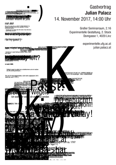 14. November 2017, 14.00 Uhr Experimentelle Gestaltung, Großer Seminarraum, 2.OG, Domgass 1