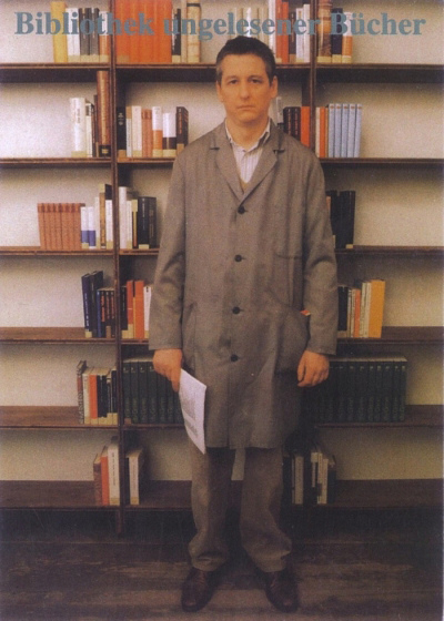 Welches Wetter haben wir heute?“ Die erste Frage bei meinen Interviews zu ungelesenen Büchern. „Welches Buch haben Sie noch nicht gelesen?“ Nach dieser Frage wird dann auch schon der Inhalt befragt, den man eigentlich nicht kennen kann, den man aber in Form von Mutmaßungen, Behauptungen etc. vorerfindet. Dieses ursprüngliche Konzept der Bibliothek ungelesener Bücher fungiert in meinem Workshop als Ritual. Ob in der Literatur oder in der Bildenden Kunst: immer geht’s um Produktion von Kunst auf zweiter Stufe: Herstellung von Literatur mittels Bildender Kunst, Produktion von Bildender Kunst mittels Literatur, um Produktion von Kunst auf höchst konjunktiver Stufe. Sprechen über Kunst, die man nie produzieren wird, schreiben über ein Buch, das es nicht gibt. Beides existiert in Form von Mutmaßungen, Behauptungen. Das sollte doch genügen. So wie ich in der Bibliothek ungelesener Bücher nach etwas frage, das man noch nicht gelesen hat, frage ich in meinem Workshop mittels Literatur nach so etwas wie einer unsichtbaren Kunst. Es soll dabei eine Schrift, ein Schreiben, eine Spur, ein Film entstehen, durch das das Noch-nicht hindurch scheint, ein Palimpsest, bei dem etwas durchscheint, das es noch gar nicht gibt, eine Zweitschrift ohne Erstschrift, eine Sekundärkunst ohne oder noch vor der Primärkunst: eine Kunst auf dem Sprung zum so genannten Primärtext: ein Kunst, die eine Kunst, die (noch) nicht existiert, behauptet. Es könnte sich um ein Daneben-Schreiben-Malen-Filmen etc. handeln, ein Weiterdichten im Sinne von Vorausdichten auf der Grenze zwischen erster und zweiter Stufe, zwischen dem Spielerischen und dem Ernsten, ein Verwischen von Grenzen. Jeder, der sich in der Kunstproduktion befindet, besitzt unzählige Werke, die er noch nicht gemacht hat. Nicht diese Werke zu machen ist Ziel des Workshops, sondern so zu tun, als ob es sie gäbe. Es geht darum mittels Literatur eine Sprache für eine Kunst des Als-ob zu schaffen, ganz im Sinne des musilschen Möglichkeitssinns. Damit bleibt der potentielle Charakter des Verfahrens gewahrt: Die Möglichkeit, vollkommen unerwartete Sequenzen zu bekommen, bleibt erhalten, zugunsten einer Art potentiellen Kunst. Potentiell bedeutet hier zufällig. Zufällig bedeutet hier usw, wobei der Fragesteller, die zweite Hand, dem unsichtbarem Kunstwerk jederzeit eine andere Richtung geben kann. Die zweite Hand bin vorderhand ich, bzw. der Katalog von Fragen und Literaturen, der das Spiel eröffnet, im Verlauf des Workshops könnte das aber jeder sein. Hier spielt natürlich zusätzlich die Lust und der Spaß am Ersetzen eine Rolle, im Sinne einer Ersatz- oder Stellvertreterkunst. Das Fabulieren über ein Kunstwerk, das es nicht gibt, ersetzt das Kunstwerk vollends. Die erste Stufe wird durch die zweite Stufe ersetzt, eine authentische Abfolge durch eine von außen importierte. Kaviarersatz (Seehasenroggen) im Verhältnis zu Kaviar. „Wer ihn besitzt, sagt beispielsweise nicht: Hier ist dies oder das geschehen, wird geschehen, muss geschehen; sondern er erfindet: Hier könnte, sollte oder müsste geschehen; und wenn man ihm von irgendetwas erklärt, dass es so sei, wie es sei, dann denkt er: Nun, es könnte wahrscheinlich auch anders sein. So ließe sich der Möglichkeitssinn geradezu als Fähigkeit definieren, alles, was ebenso gut sein könnte, zu den¬ken und das, was ist, nicht wichtiger zu nehmen als das, was nicht ist. [...] Solche Mög¬lichkeitsmenschen leben, wie man sagt, in einem feineren Gespinst, in einem Gespinst von Dunst, Einbildung, Träumerei und Konjunktiven.“ Robert Musil, Der Mann ohne Eigenschaften, Kap. 4, ‚Wenn es Wirklichkeitssinn gibt, muß es auch Möglichkeitssinn geben’