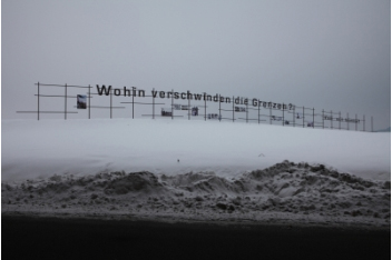 Iris Andraschek und Hubert Lobnig präsentieren im Foyer und im Hörsaal 4 der KTU eine Installation, die der Künstler und die Künstlerin unter dem Titel "Wohin verschwinden die Grenzen?" im Frühjahr 2009 an der österreichisch-tschechischen Grenze bei Fratres/Slavonice realisierten. Eine 4 m hohe und über 50 m lange Metallkonstruktion – sie erinnert an Zäune, Abgrenzungen und Absperrungen – erstreckt sich entlang einer Böschung wenige Meter von der eigentlichen Grenzlinie entfernt. An der Konstruktion sind ein Schriftzug und Fototafeln angebracht. Die Fotos sind Spuren einer Arbeit, bei der Andraschek/Lobnig mit Laiendarsteller/inne/n aus Europa und Afrika Szenen nachinszenierten, wie sie sich an den Grenzen von Mexiko/USA, Lampedusa/Nordafrika, Ungarn/Österreich, an der Berliner Mauer und an anderen Grenzorten ereignen.