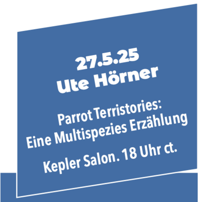 Das künstlerische Forschungsprojekt "Parrot Terristories" ist eine Multispezies Erzählung darüber, wie unsere Geschichten und Kulturen miteinander verwoben sind. In Interviews, Bildern, Sounds und Installationen geht Ute Hörner, gemeinsam mit Mathias Antlfinger, der Frage nach, welche Beziehungen zwischen afrikanischen Graupapageien und Menschen möglich waren und sind, und was es heute bedeutet, sich um Individuen dieser Art zu kümmern.