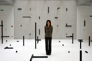 Esther Stocker verwendet in ihrer Malerei ein optisch komplexes Repertoire aus geometrisierten Zeichen- und Rastersystemen, die durchwegs in den Farben schwarz-grau-weiß gehalten sind und die sie auf großformatige Bilder oder auch auf dreidimensionale, begehbare Bauten überträgt. Mit bewusstem Bezug auf die Konstruktivisten und die Op-Art der 1960er Jahre richtet sich Stockers Interesse auf die Bedingungen der Wahrnehmung generell und im weitesten Sinn auch auf Effekte digitaler Bildtechnologien.
