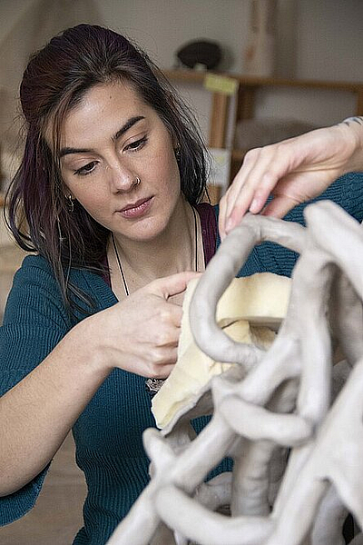 Preisträgerin Helena Sekot, Studierende der Plastischen Konzeptionen / Keramik, stellt ihre aktuellen Werke aus.
