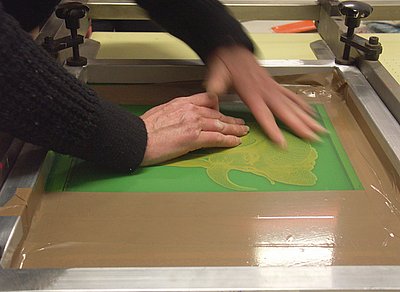 Manipulative Eingriffsmöglichkeiten, sowohl auf der grafischen Entwurfsebene als auch im technischen Druckprozess sollen experimentell entwickelt werden um der ursprünglich reinen Reproduktionstechnik Siebdruck unikaten Charakter zu verleihen.