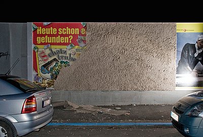 Werbung gehört nicht dazu, ich verspürte durch diese Aktion ein Gefühl der Genugtuung: Ich habe eine Entscheidung gefällt und die Konsequenzen daraus gezogen. Bei der Aktion im öffentlichen Raum habe ich dann Ton als Bildträger und als Bild selbst verwendet. Eine Plakatwand wird nicht mit Graffiti verschönert, sondern mit dem Material, welches mich schon die ganze Zeit begleitet: mit Ton. Dieser wird mit der Hand aufgetragen und weist durch die Arbeitsspuren ein Relief auf, welches nicht ohne ästhetischen Reiz ist.