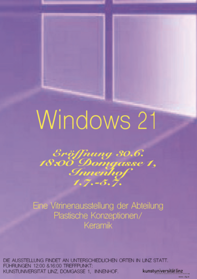 Eröffnung: 30. Juni 2021, 18.00 Uhr; Ausstellung bis 3. Juli 2021 Vitrinen und Schaufenster in Linz