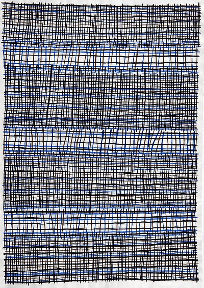 Im künstlerischen Arbeitsprozess wird immer wieder zum zeichnerischen Ausgangspunkt zurückgekehrt, um die Vielfalt möglicher Strukturvarianten und Bilder auszuloten, die durch Wiederholung und Verdichtung entstehen. Dabei wird die scheinbar einfachste aller zeichnerischen und gestalterischen Formen - die gerade Linie - in der Arbeit als zentrales Gestaltungselement eingesetzt. Die existentiellen Konstanten, waagrecht und senkrecht, bilden durch Überlagerungen und Auslassungen Texturen, die als Weltbilder gelesen werden können.