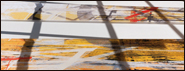 mit dem Titel „Gitterbewegungen“ greift das bildgestaltende Element des Gitters auf, und setzt es zeitgleich als Symbol für die kommunikative Vernetzung im Haus ein. Beeinflusst von den temporären, im Tageslauf sich verändernden grafischen Wandzeichen des dynami-schen Licht- und Schattenspiels des Raumes, entstehen Überlagerungen der Schattengitter mit den experimentellen Siebdruckstrukturen. Die Farben der senkrecht nebeneinander hängenden Druckbahnen bewegen sich im Bereich von Gelb-, Orange- bis Grautöne. Die Wahl dieser freundlichen Koloratur als Vermittler einer positiven Stimmung für den Betracht-er, ist in Abstimmung mit den räumlichen Voraussetzungen, ein Anliegen der Künstlerin.