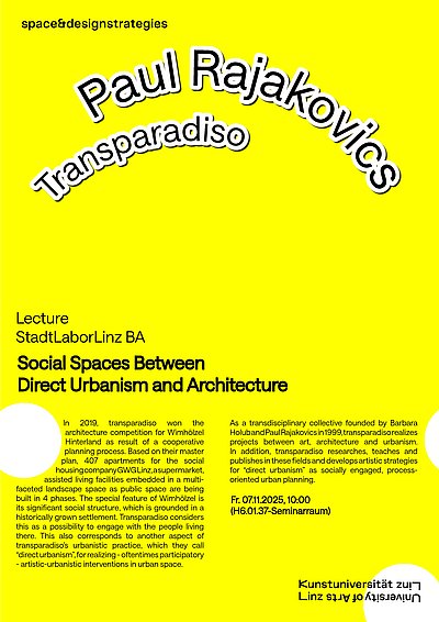 In 2019, transparadiso won the architecture competition for Wimhölzel Hinterland as result of a cooperative planning process. Based on their master plan, 407 apartments for the social housing company GWG Linz,asupermarket, assisted living facilities embedded in a multifaceted landscape space as public space are being built in 4 phases. The special feature of Wimhölzel is its significant social structure, which is grounded in a historically grown settlement. Transparadiso considers this as a possibility to engage with the people living there. This also corresponds to another aspect of transparadiso's urbanistic practice, which they call "direct urbanism", for realizing - oftentimes participatory- artistic-urbanistic interventions in urban space.