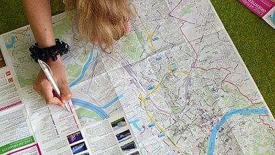 Die eigene Stadt bzw. gebaute Umwelt soll durch Stadtspaziergänge besser kennengelernt werden, indem sie genau auf ihre Formen, Farben und Spezifika untersucht wird. Die Besonderheiten werden auf einem Plan kartiert undfotografisch dokumentiert. Dabei wird auf die Themen Perspektive und Stadtfluchten besonderen Wert gelegt.