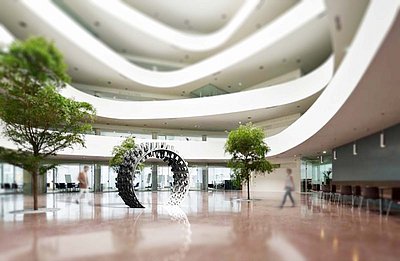 Im Brennpunkt des Projektes stand das Anliegen, diese Bemühungen in einem raumgreifenden Objekt zu verbildlichen, das im Zentrum des großen lichtdurchfluteten Innenraumes des Gebäudes stehen sollte und für MitarbeiterInnen und BesucherInnen Anlass sein könnte, sich wiederzufinden, überrascht zu sein, neugierig und inspiriert zu werden. Dabei galt es, bestimmte gestalterische Herausforderungen zu meistern.
