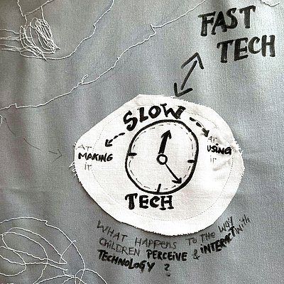 We live in a fast-paced world in which we invent technologies to make our lives even faster. The latest developments in artificial intelligence only seem to reinforce these processes by generating a large number of finished works within a few seconds. But what happens when we consciously turn to a “slow” design material and try to slow down the creative process? In this workshop, the participants will learn to design with textile materials in connection with handcrafted electronics, and invent, narrate, and create their own visions of alternative futures. Together we will speculate about the technologies of the future and experiment with the different methods of crafting electronics, which enable an unusual way of creative self-expression and play with our inner sense of time.