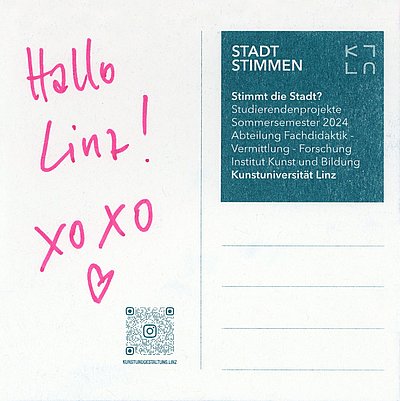 Briefe an Linz, Formen des Dialogs und Zurücksprechens waren Ausgangspunkt der Lehrveranstaltung Stadtstimmen zu künstlerisch-pädagogischer Praxis mit Nora Landkammer im Sommersemester 2024.