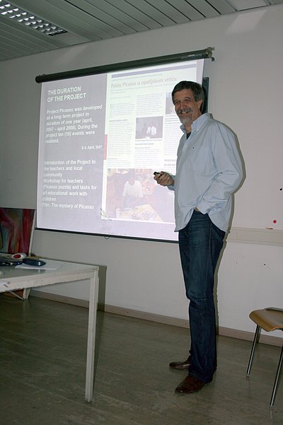 Dr. Mathiaz Duh und Dr. Thomaz Zupancic boten den Studierenden der BE/MG einen intensiven Einblick in ihr Picasso-Kindergarten-Projekt. Dabei wurde die Grundfrage, wie unterschiedliche Zielgruppen persönliche Zugänge zu bedeutenden Werken der Kunst entwickeln können, behandelt.