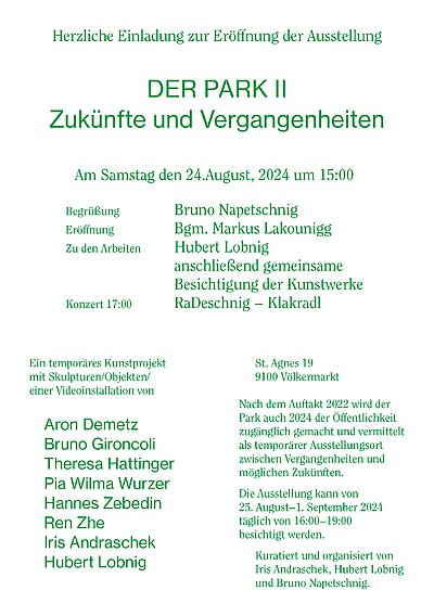 Eröffnung: 24. August 2024, 15.00 Uhr; Ausstellung bis 1. Sept. 2024 St. Agnes 19, 9100 Völkermarkt