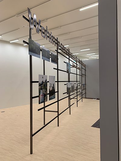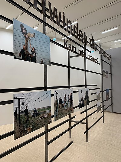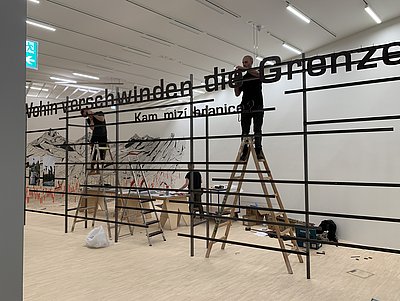 Die Installation "Wohin verschwinden die Grenzen? Kam mizí hranice?" von Hubert Lobnig, Lehrendem der Künstlerischen Praxis, und Iris Andraschek ist im Rahmen der Ausstellung "Sehnsuchtsträume" zu sehen.