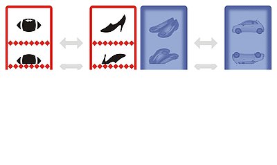 Mit den Karten des „Kontextquartettes“ erfahren die BesucherInnen spielerisch, dass der visuelle Auftritt der Spielkarten die Auswahl der inhaltlich zusammengehörigen Zeichen erschweren beziehungsweise erleichtern kann. Die Funktion der Abstimmung derartiger Gestaltungswerte zur Bildung von Zeichenfamilien und Leitsystemen wird mit diesen Karten praktisch getestet und analysiert..