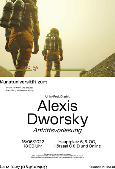 Seit 2021 ist Alexis Dworsky Professor für Mediengestaltung am Institut für Kunst und Bildung. Er verknüpft künstlerisch-praktische mit theoretisch-reflektierenden und pädagogisch-vermittelnden Strategien. Dworsky versteht den digital-medialen Raum als öffentlichen Raum: „Die virtuelle Welt verschränkt sich immer mehr mit der physischen und auch hier kann man künstlerisch forschen und intervenieren!“ Nach seinem Studium an der Akademie der Bildenden Künste München promovierte er an der Bergischen Universität Wuppertal über die Kulturgeschichte des Dinosauriers. Er lehrte unter anderem an der Akademie in München sowie kurz am Art Department der Newcastle University und an der Kunst- akademie in Budapest. Seine künstlerischen Vermittlungs- und Forschungsaufenthalte führen ihn in die Ferne und ins Netz.