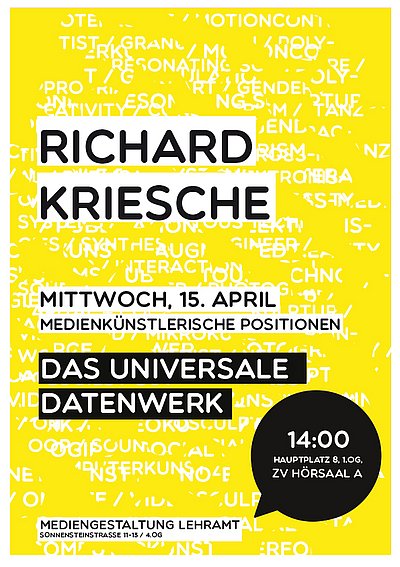 Die Abteilung Mediengestaltung Lehramt lädt zum Gastvortrag von Richard Kriesche.