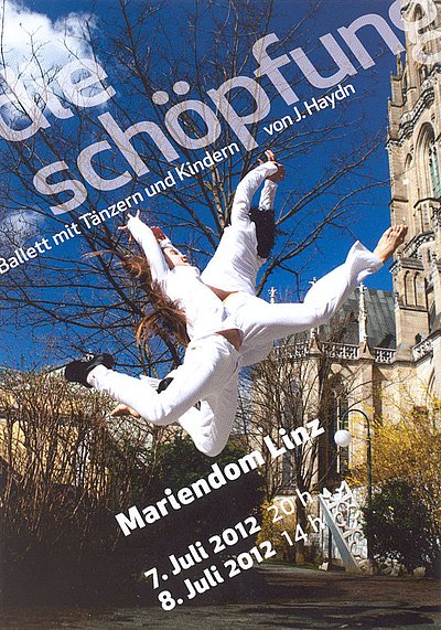 In einer einmaligen Zusammenarbeit von KünstlerInnen aller Altersstufen - SängerInnen und TänzerInnen des Landestheaters, TanzstudentInnen der Anton Bruckner Privatuniversität, Orchester und Chor des Linzer Mariendoms, der Kunstuniversität sowie 50 Kindern des Kindergartens und Hortes der Kreuzschwestern Linz wird die Schöpfung zur Musik von Joseph Hayden am 7. und 8. Juli 2012 im Linzer Mariendom aufgeführt.