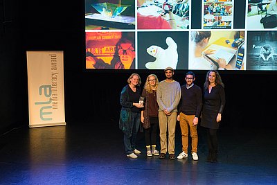Studierende des Lehramts Mediengestaltung erhalten den media literacy award für das Projekt „Das Smartphone im Unterricht“ im Bereich Mediendidaktik.
